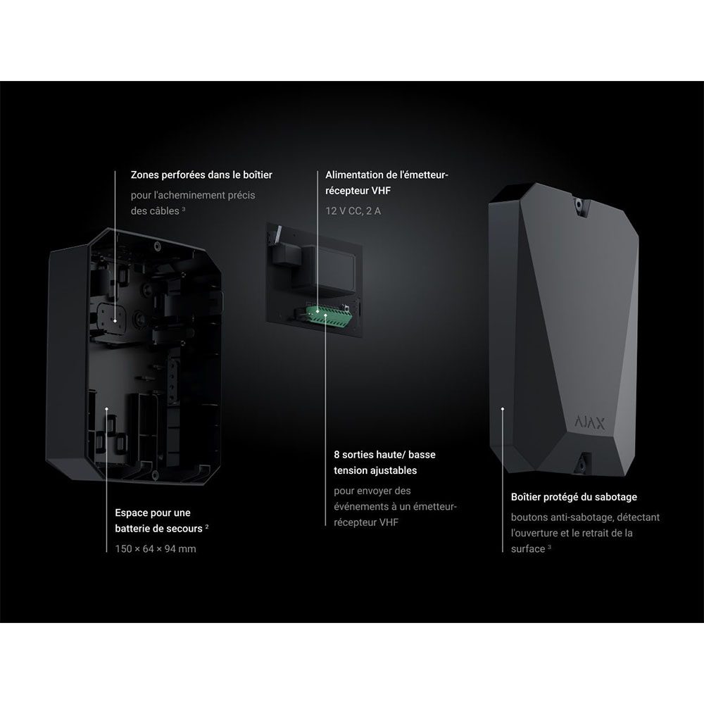 vhfBridge est un transpondeur, fournissant à la centrale un réseau de communication supplémentaire avec un centre de télésurveillance. Avec vhfBridge le système Ajax peut être utilisé dans des villes où la connexion internet n’est pas stable, dans des montagnes, des réserves naturelles des zones désertiques.
